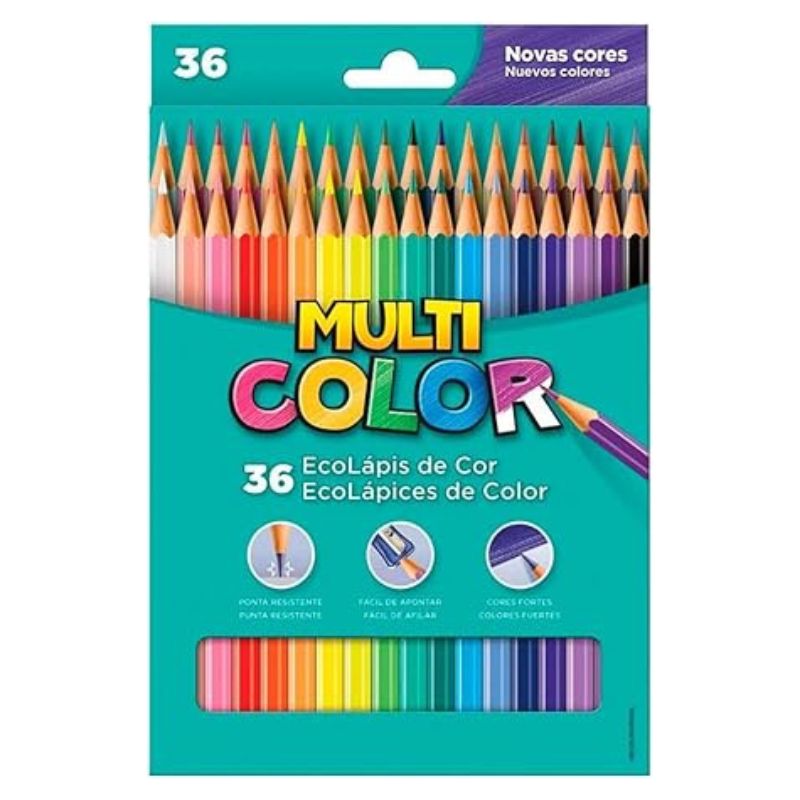 Lápis de Cor EcoLápis Multi Color 36 cores foram desenvolvidas com o objetivo cores mais vivas e dispões de excelente cobertura sobre papéis. Ideal para deixar aquele seu desenho muito mais bonito.