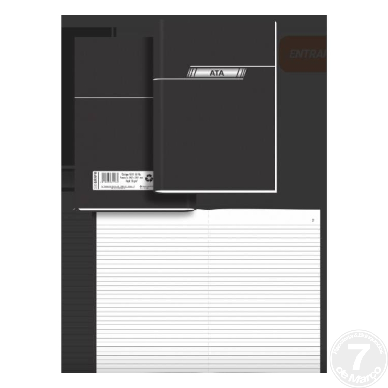 É um caderno de capa dura, com 100 folhas pautadas e numeradas, ideal para registrar reuniões e ocorrências em empresas e escritórios.