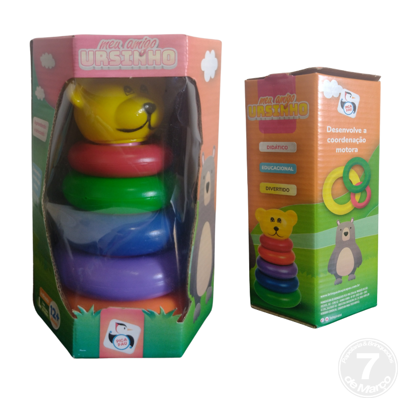 Jogo De Argolas Meu Amigo Ursinho 581 Pica Pau Características:Didático, divertido e educacional. Desenvolve a coordenação motora Encaixe e brinque. Com formas divertidas e coloridas, Anéis coloridos. Aprendendo e brincando.
