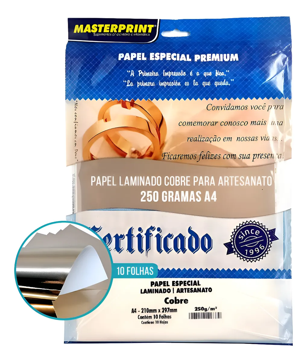 PAPEL COBRE LAMINADO/ARTESANATO 250G A4 MASTERPRINTPAPEL COBRE LAMINADO/ARTESANATO 250G A4 MASTERPRINT