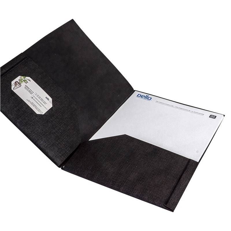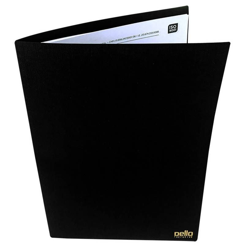 É um item de organização profissional, projetado para o transporte e a apresentação de documentos de tamanho A4.