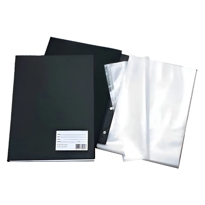 Essencial para organizar documentos importantes (trabalhos, portfólios, catálogos de vendas, fotos) sem que amassem ou rasguem, feita de PVC resistente, com capa preta.