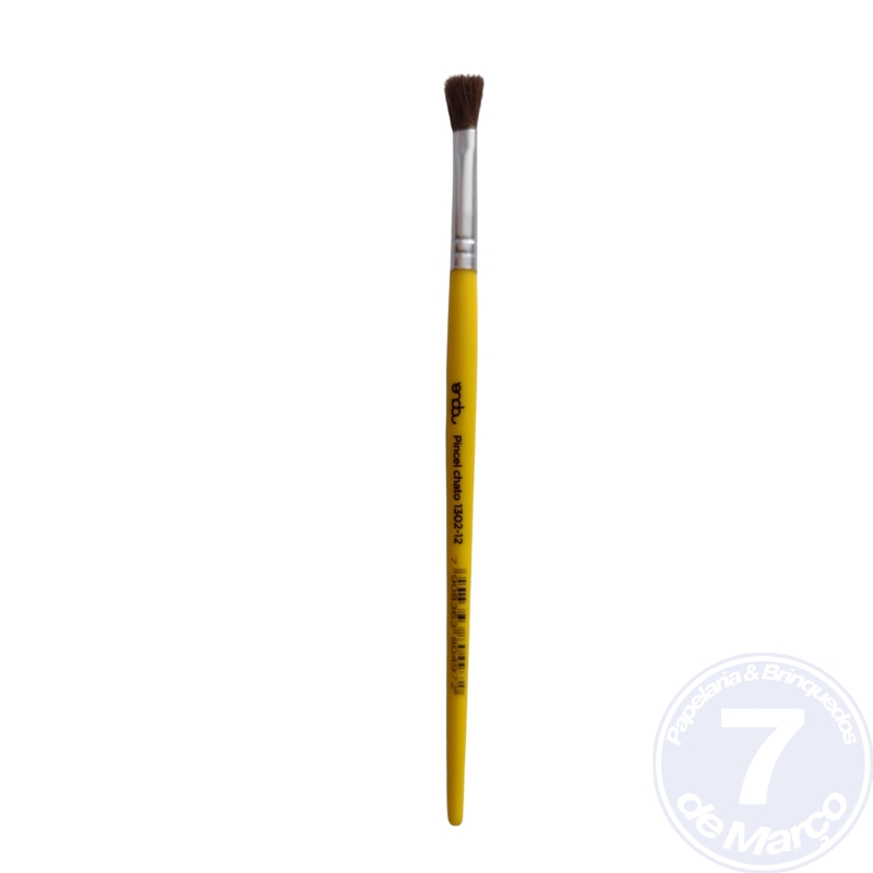 É um pincel com formato de cerdas planas, ideal para espalhar tinta e preencher grandes áreas com acabamento uniforme, sendo usado em atividades escolares e artística.