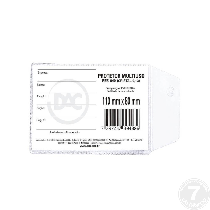PROTETOR DE DOC MULTIUSO 110X80MM DACDisponibilidade: Em estoque