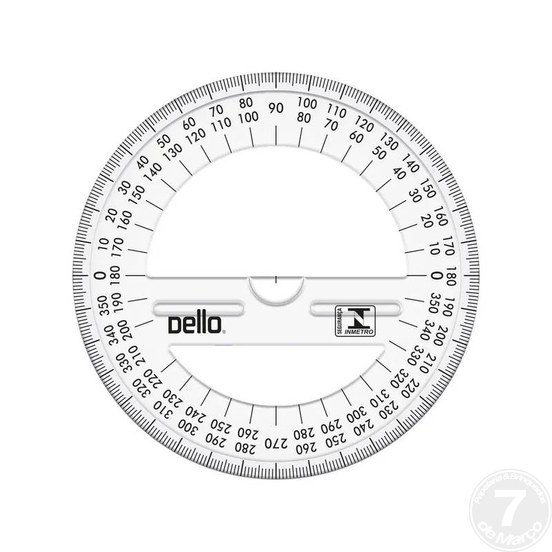 É uma ferramenta escolar básica, feita de plástico (polipropileno ou poliestireno), ideal para medir e desenhar ângulos completos (até 360°) em matemática e geometria.